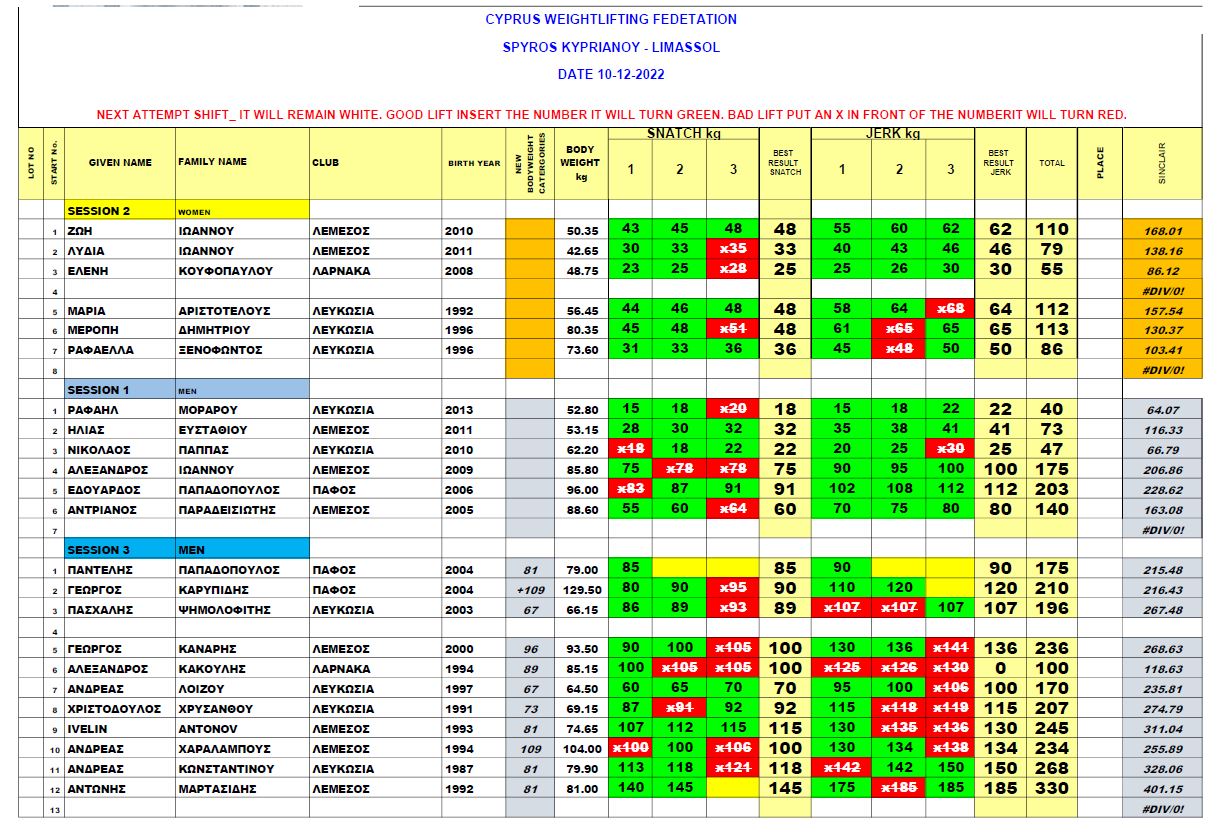 Οι Παγκύπριοι Αγώνες Άρσης Βαρών διεξήχθηκαν με μεγάλη επιτυχία στις 10 Δεκεμβρίου 2022 στο κλειστό γήπεδο Σπύρος Κυπριανού.