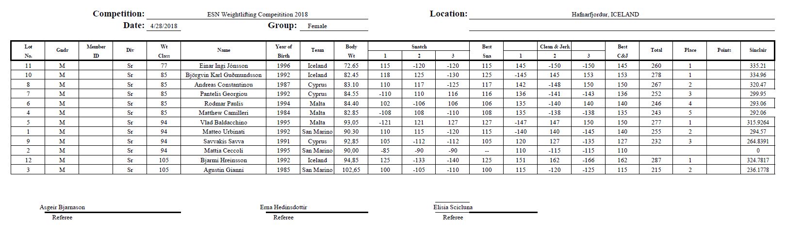 Europe Small Nation Games – Reykjavík, Iceland – Results Below you can see the results for the games: Women Game Men Game george2024-04-24T08:17:31+02:00May 3rd, 2018| Share This Story, Choose Your Platform! FacebookXRedditLinkedInTumblrPinterestVkEmail Related Posts Παγκύπριοι Αγώνες Άρσης Βαρών, Λεμεσός, 5 & 6 Δεκεμβρίου 2025 Gallery Παγκύπριοι Αγώνες Άρσης Βαρών, Λεμεσός, 5 & 6 Δεκεμβρίου 2025 Παγκόσμιο Πρωτάθλημα Άρσης Βαρών σε Πάγκο – Αίγυπτος 2025 Gallery Παγκόσμιο Πρωτάθλημα Άρσης Βαρών σε Πάγκο – Αίγυπτος 2025 Η Κυπριακή Ομοσπονδία Άρσης Βαρών στο Παγκόσμιο Πρωτάθλημα Άρσης Βαρών 2025 στη Νορβηγία, 2 – 11 Οκτωβρίου 2025 Gallery Η Κυπριακή Ομοσπονδία Άρσης Βαρών στο Παγκόσμιο Πρωτάθλημα Άρσης Βαρών 2025 στη Νορβηγία, 2 – 11 Οκτωβρίου 2025