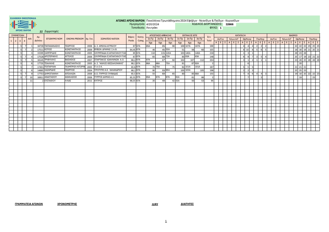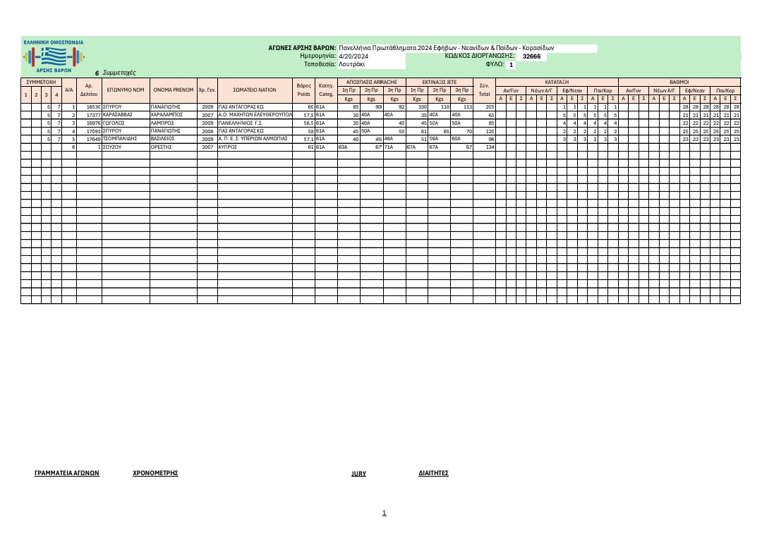 Η αποστολή της Ομοσπονδίας μας αποτελείτουν από τους αθλητές/τριες:
